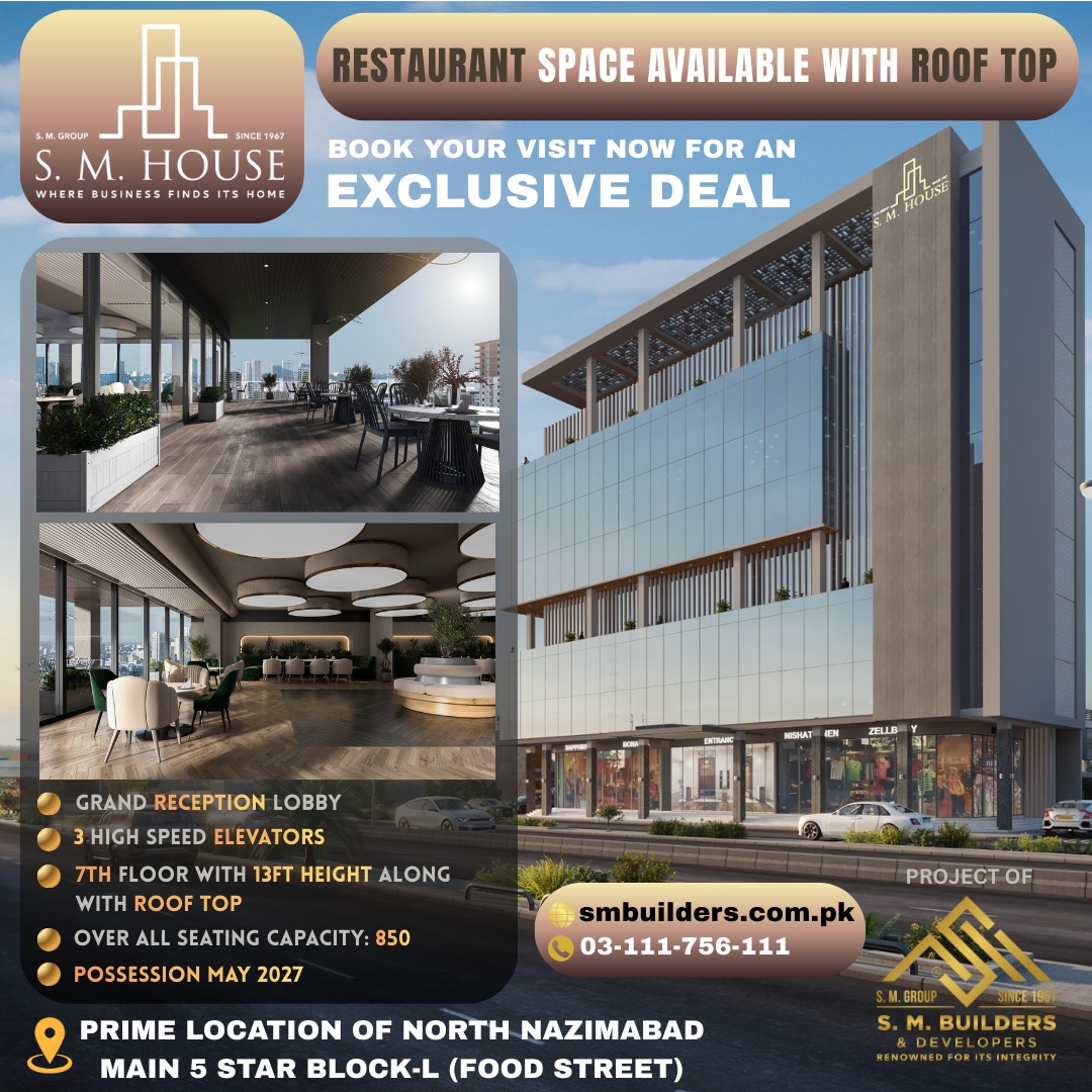 A Ground plus 07 Total Commercial Venture of S. M. Builders & Developers at a Prominent Location in the Heart of North Nazimabad.